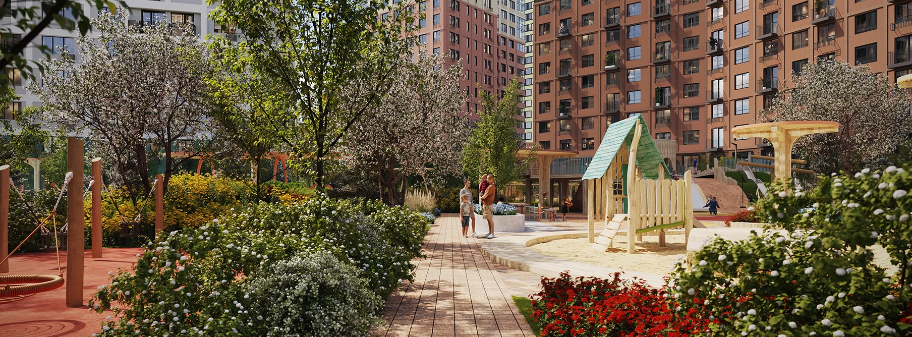 Европейский берег» — это дома переменной этажности, урбан-виллы, кварталы и башни. В микрорайоне уже сданы и заселены три очереди, а в шести домах стартовали продажи. Началась разработка концепции благоустройства последнего участка набережной в «Европейском береге». Он граничит с паркингом «Скала» и соседним жилым комплексом, а его площадь составит 18,5 тыс. м².