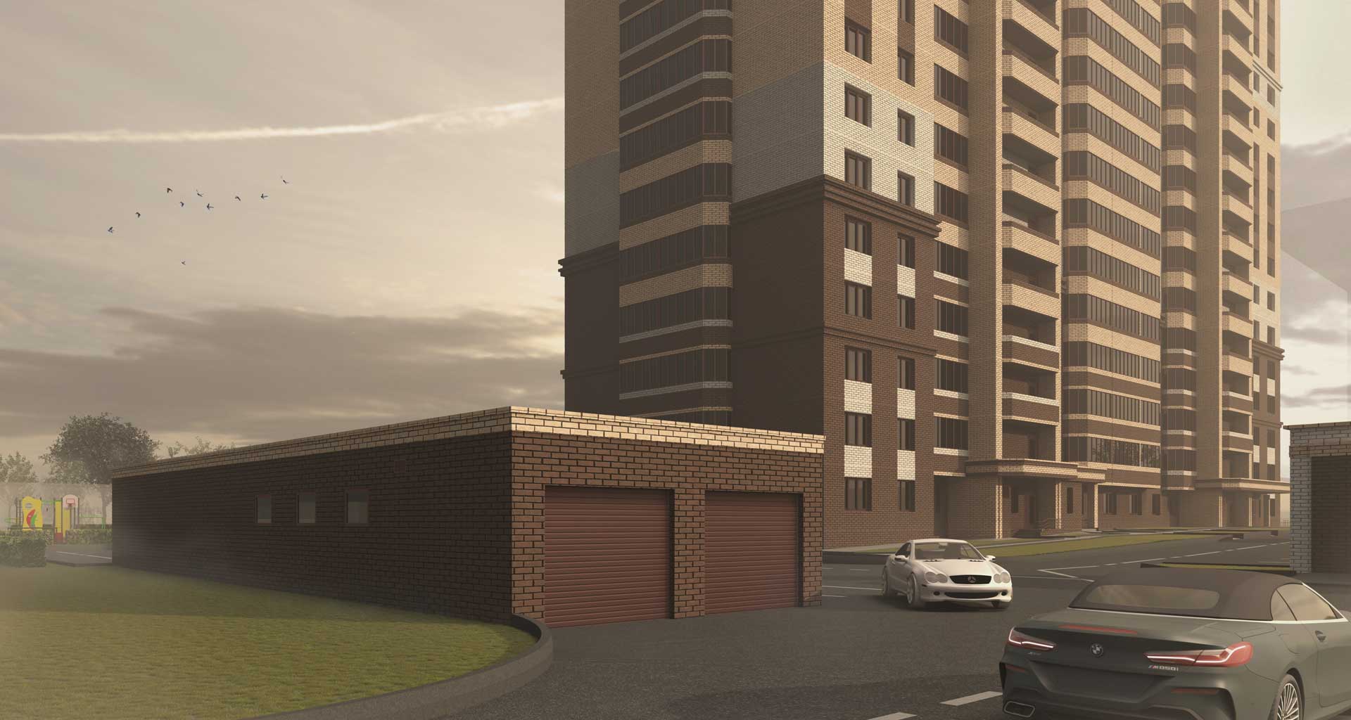 «Матрёшкин двор» — квартал из 26 домов с полноценной инфраструктурой: детские сады, школа, магазины, аптеки, клиники, офисы служб доставки и кафе.