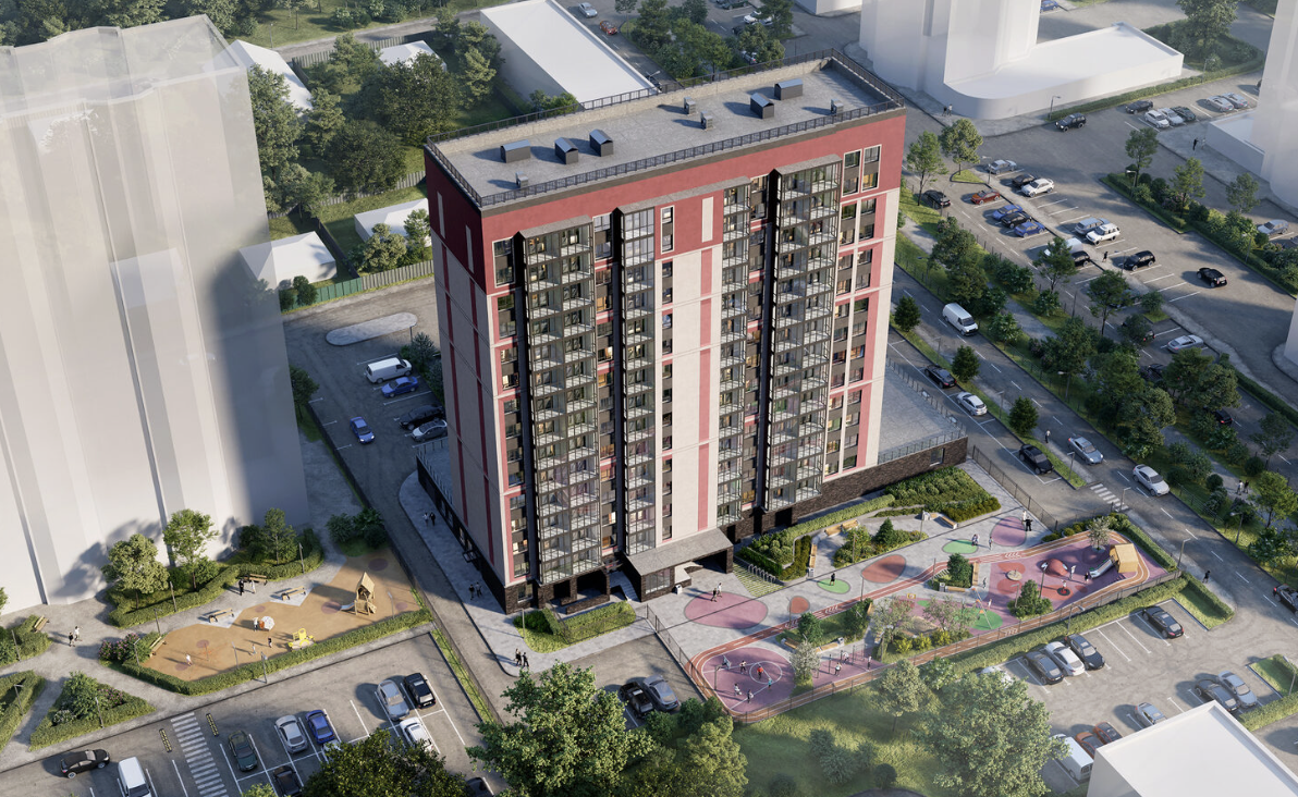 Дополнительным акцентом жилого комплекса стала высотная «свечка» со сложной архитектурой, которая будет выступать «маяком» на фоне всей застройки.