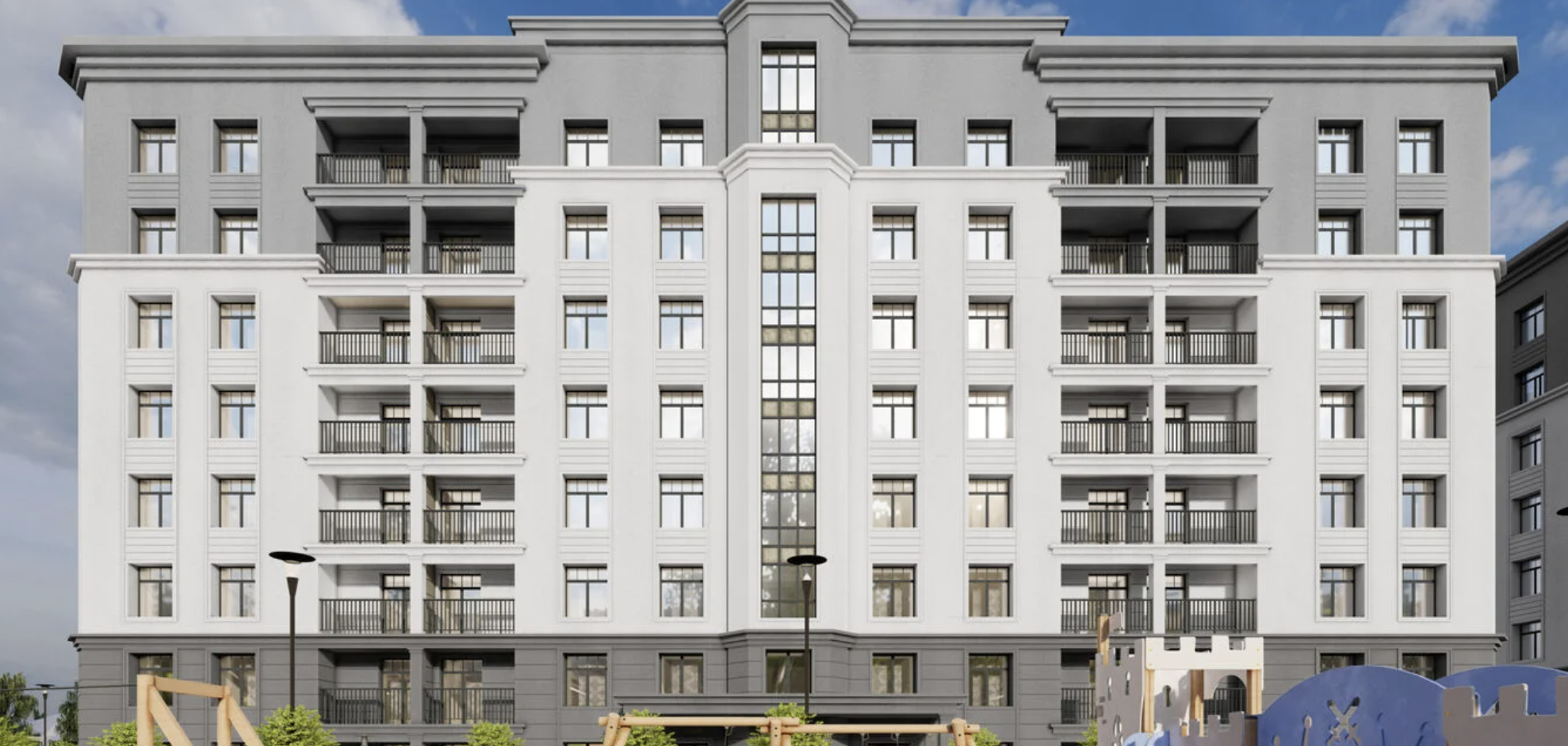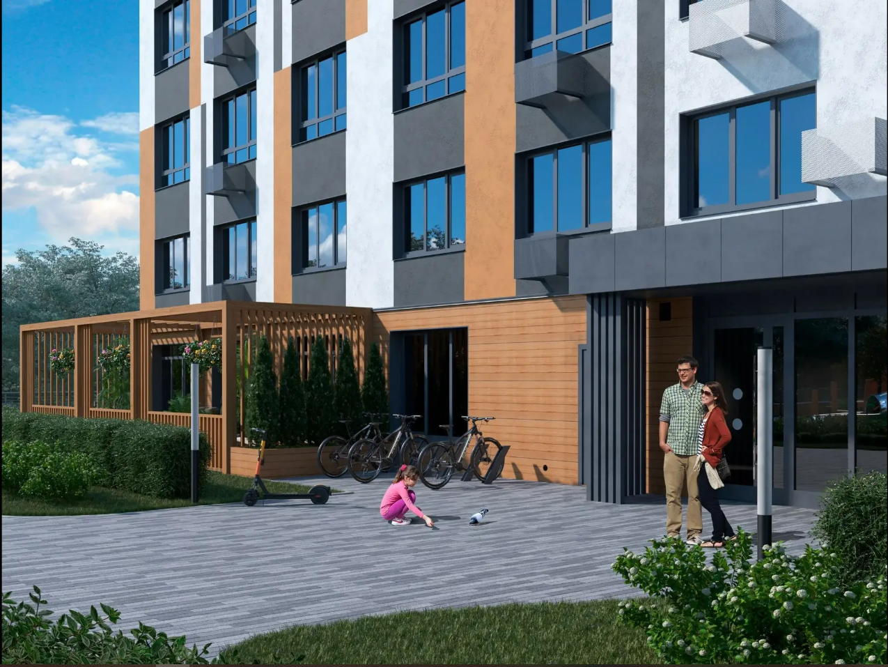Уникальная архитектура проекта — визитная карточка квартала. Стилизация домов со скатными крышами под барнхаусы добавляет ЖК скандинавский колорит и отсылает к природным мотивам Норвегии и Швеции.