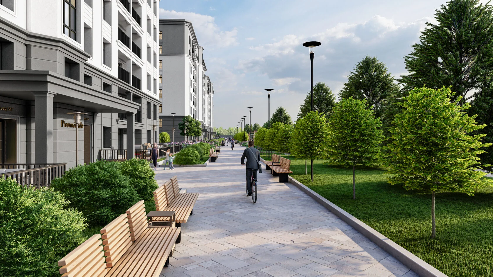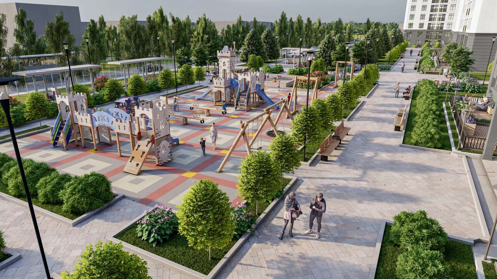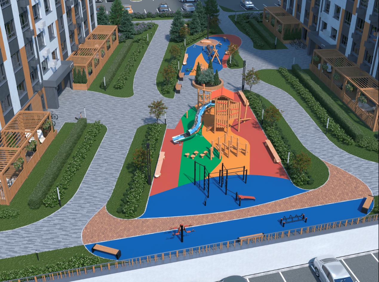 Благоустройство квартала уникально своими общественными пространствами и комфортной социальной экосистемой, где каждый житель найдет себе занятие по душе.