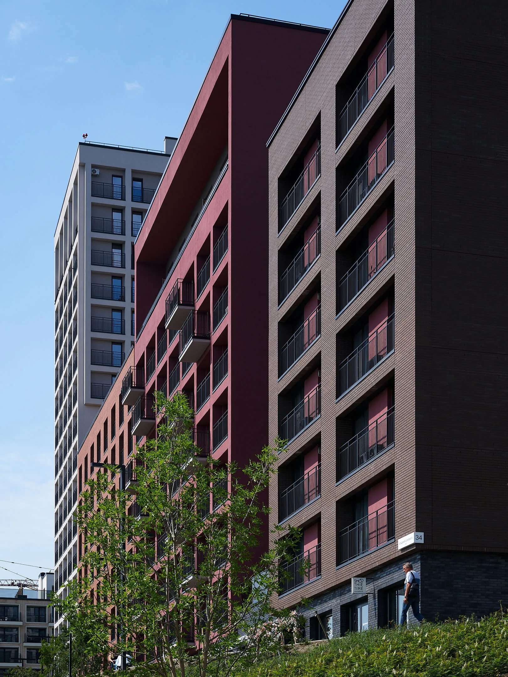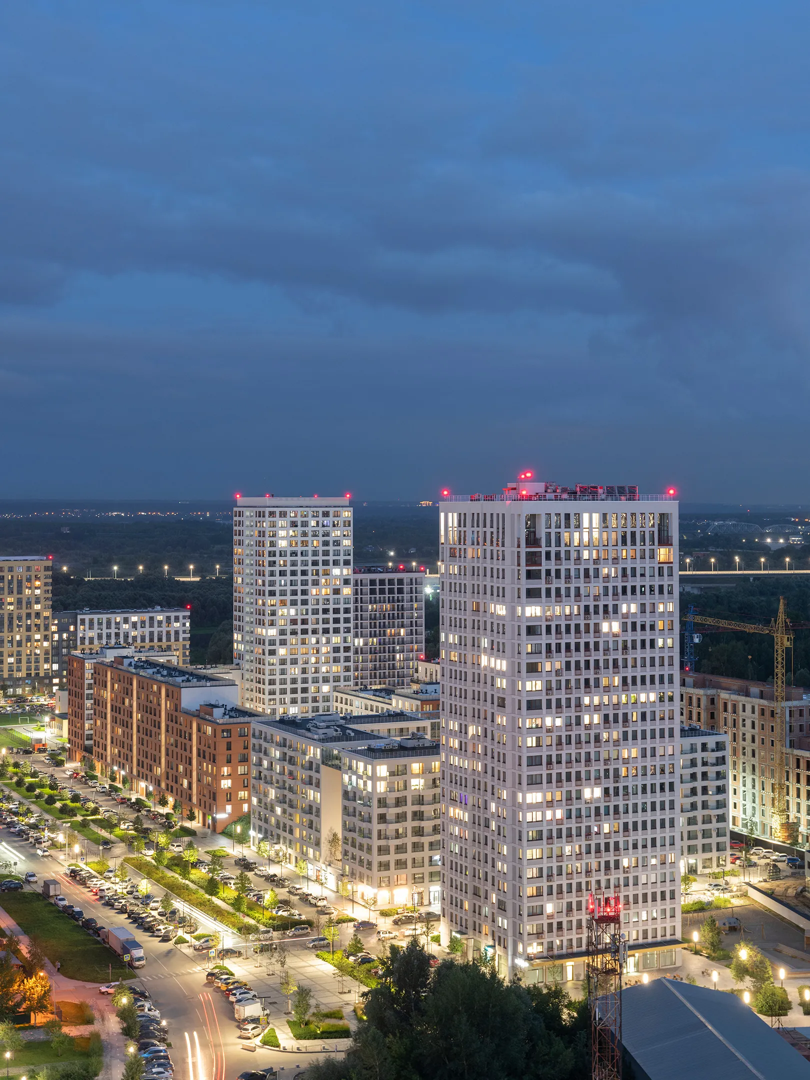 Оригинальная архитектура квартала подчеркивается акцентным домом-«маяком» — 6-й блок-секцией 1 очереди в виде высотной «свечки» со сложной архитектурой.