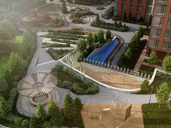 современные игровые и воркаут-зоны с безопасным покрытием;