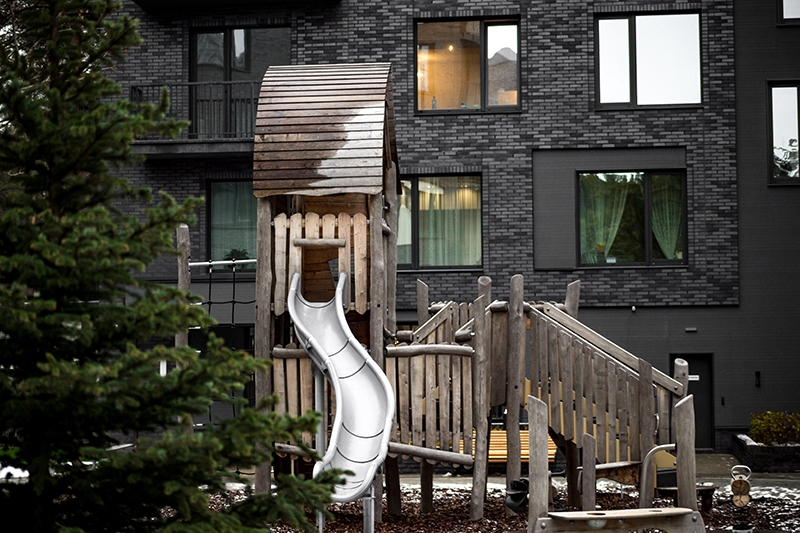 На закрытой охраняемой территории предусмотрены места для развлечений детей разных возрастов. Для самых маленьких — яркий игровой городок, для подростков — функциональная зона work-out.Современное благоустройство двора делает его органичной частью архитектурного ансамбля, а красивый ландшафтный дизайн превращает внутреннее пространство в уютный парк для жителей, где можно гулять и проводить время с друзьями.
