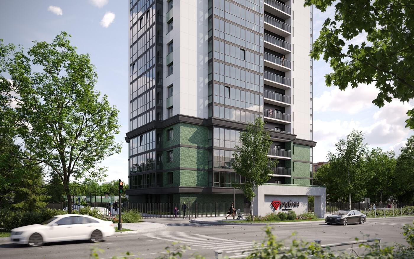 Первый дом квартала состоит из двух жилых секций — 18 и 25 этажей. На первых двух этажах расположены помещения для коммерческой инфраструктуры, на остальных — квартиры. В проекте представлены квартиры с продуманными и функциональными планировками площадью от 20 до 131 м². Каждая квартира отличается удобным зонированием с правильным разделением приватных и общественных зон, панорамными видами на город и такими приятными деталями, как наличие в спальне отдельной ванной с окном и гардеробной.