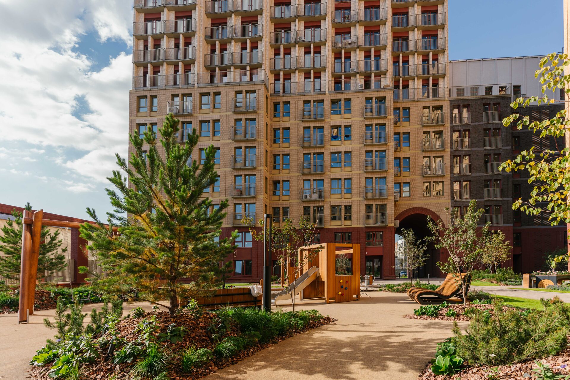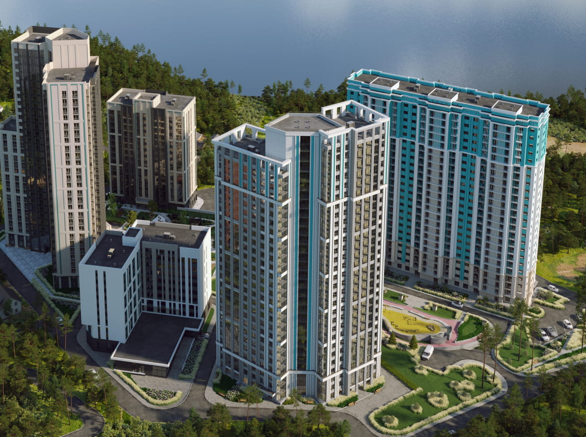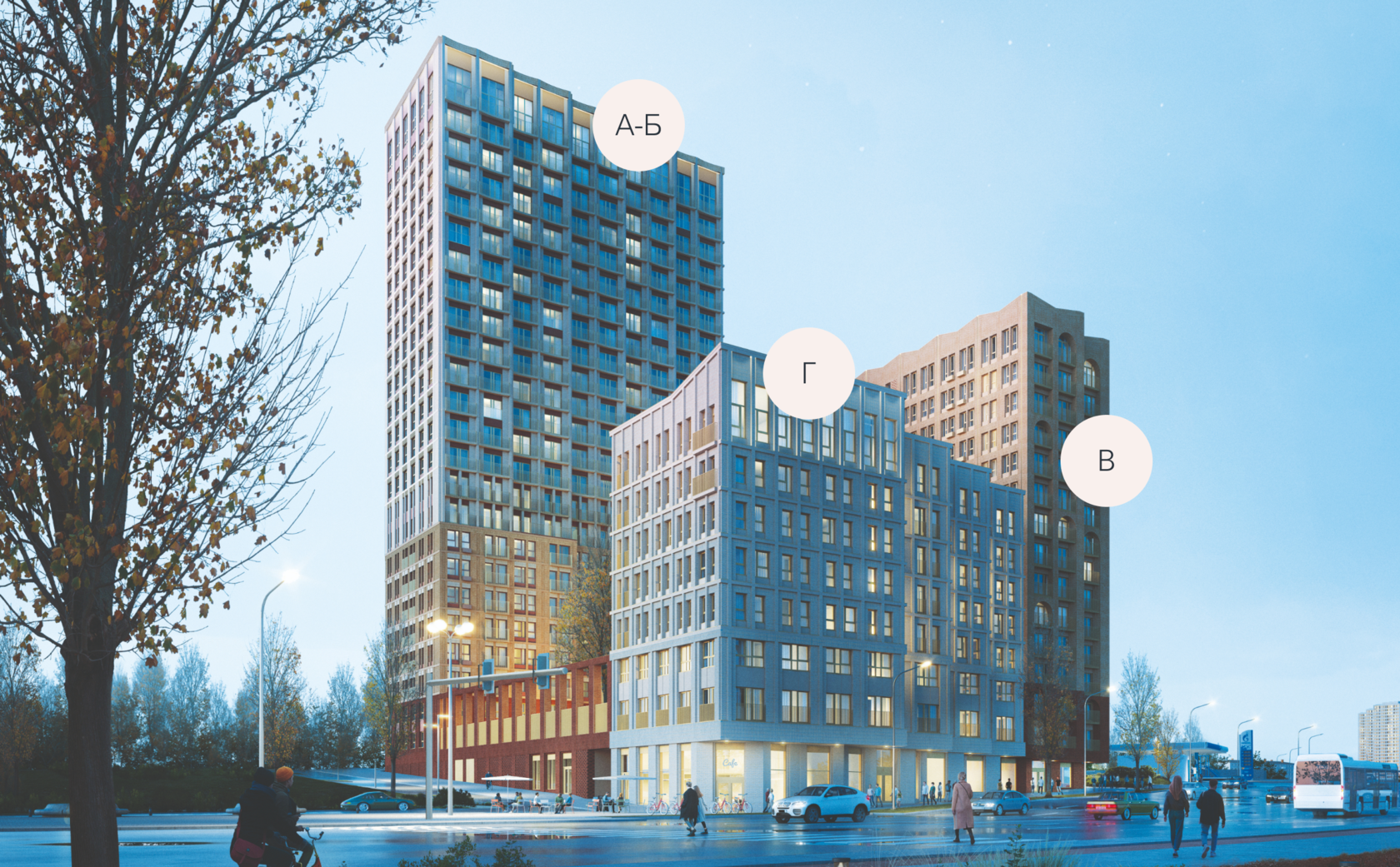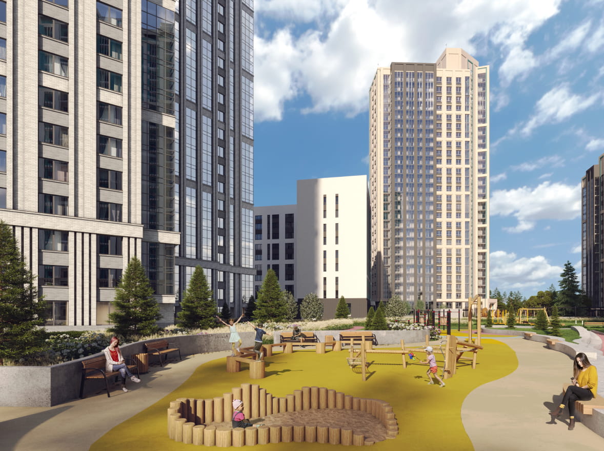 Комфорт для пешеходов, и владельцев автомобилей. Сквозные подъездам разделяют зону парковок и пространство для жизни: детские площадки с мягким покрытием, территория для занятий спортом и спокойного отдыха.