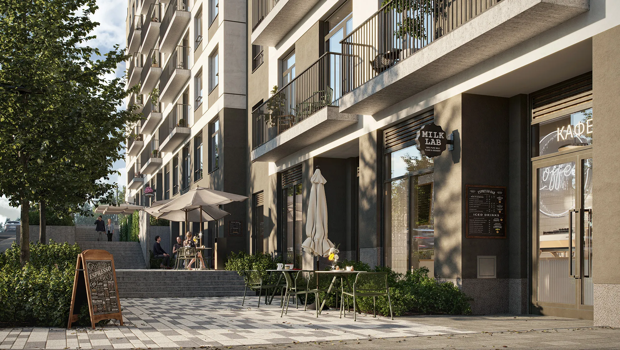 Комплекс находится в живой и активной части города с большим количеством разных активностей. Отлично подойдет спортсменам, гурманам и модникам.