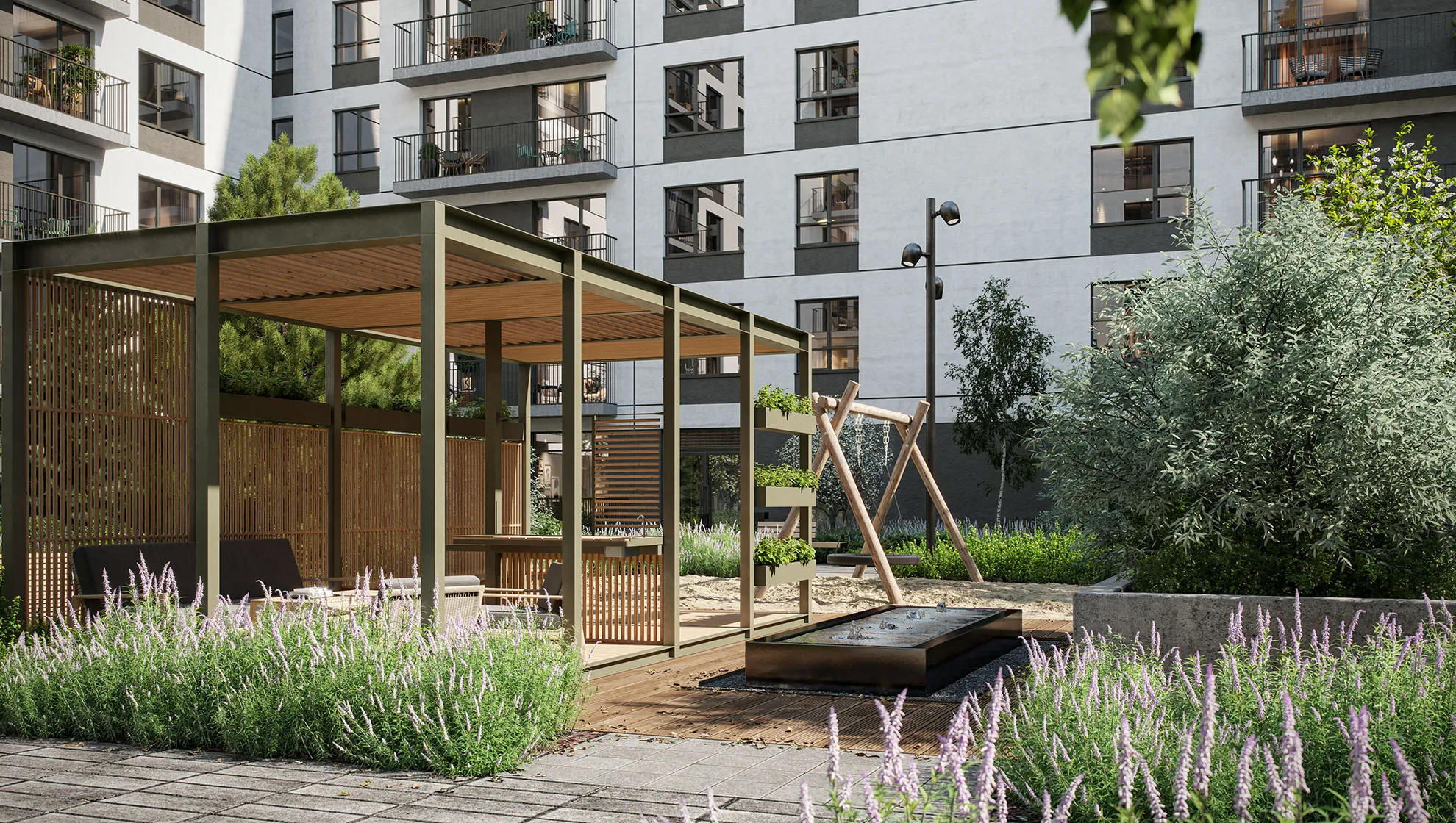 Современные детские и спортивные площадки, продуманное зонирование дворов, закрытая территория. Дети заняты активным и безопасным отдыхом, а родители спокойны.