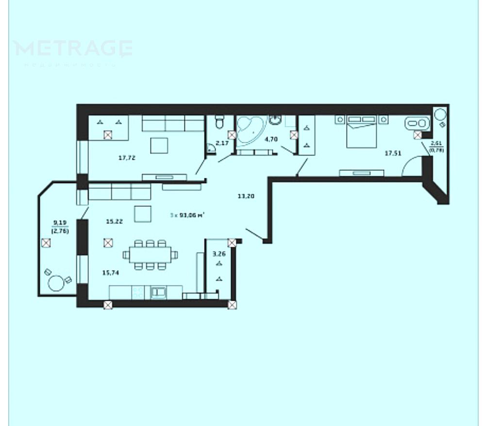 93 м²