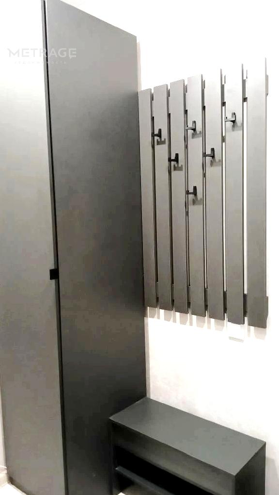 Интерьер выполнен в светлых тонах, пол покрыт ламинатом высокого класса, стены оклеены обоями, а потолки оформлены с помощью натяжных систем с интегрированным освещением. В ванной комнате использована керамическая плитка.