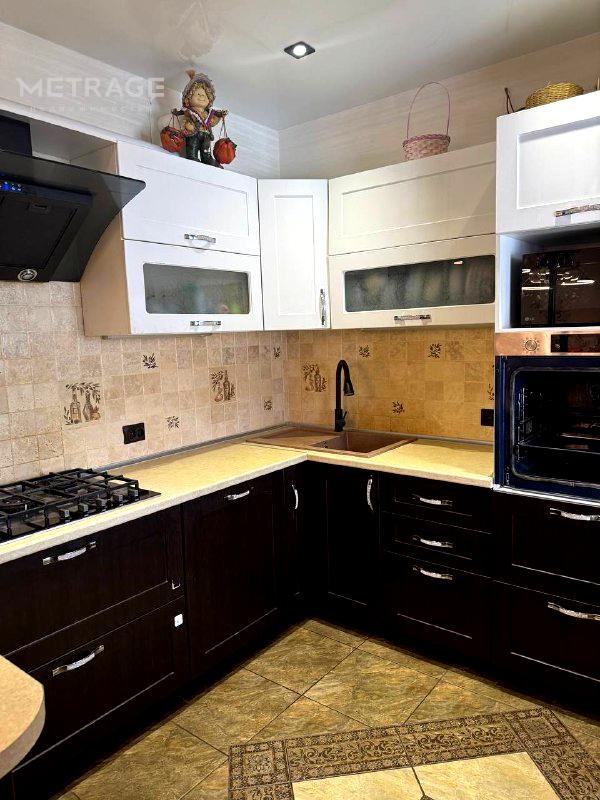 Первый этаж встроенная кухня и барная стоика остаются. Пол-Керамогранит.
